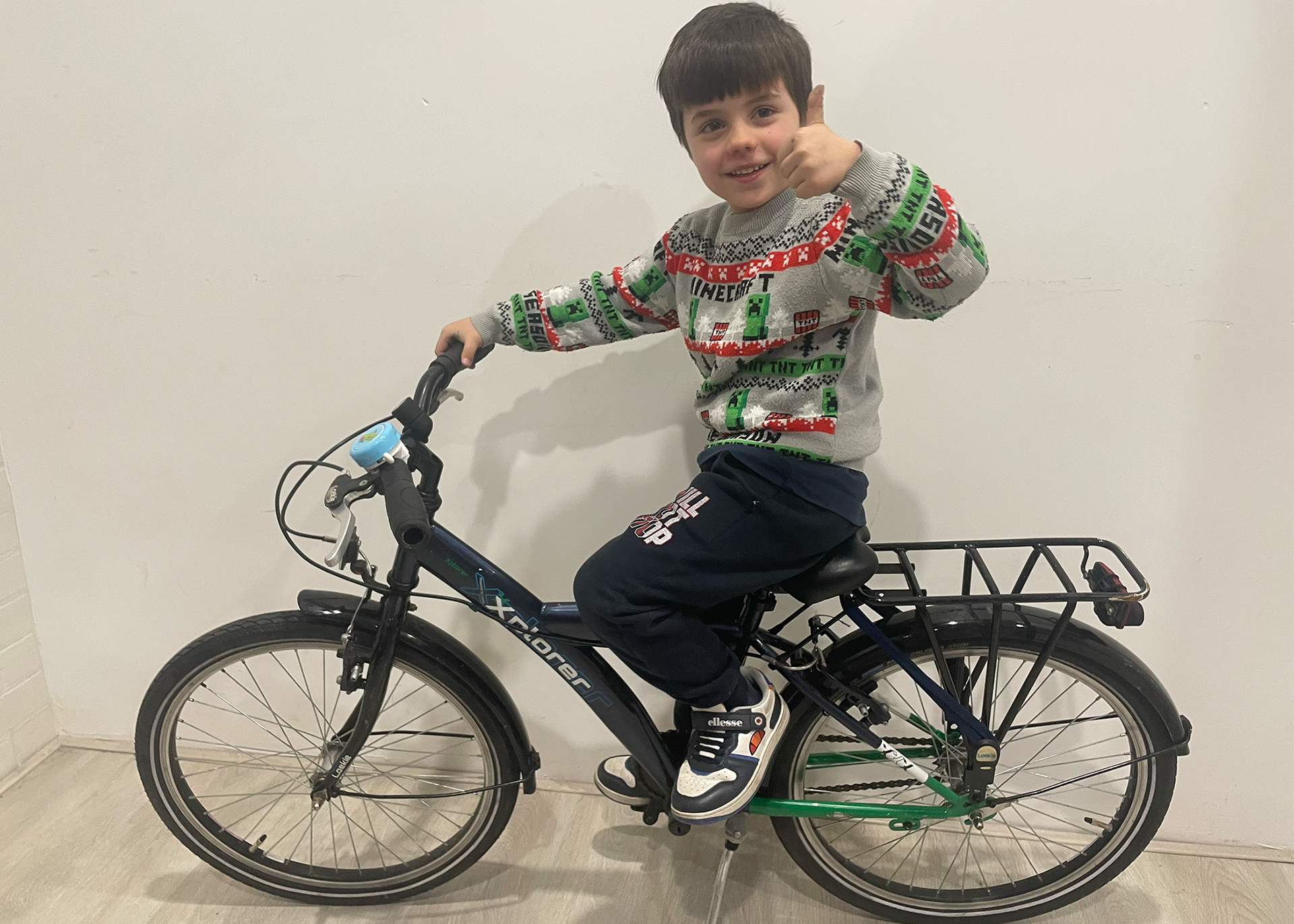 After: The repair included a fix of the back tire and the handlebars, as well as adding front and back lights to the bike, adding a bell and other small refreshments to increase the durability of the repair